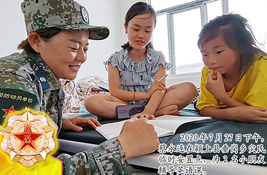 2020年7月,江淮洪流滚滚,蔡永连主动请战,跟随省军区抗洪宣传小分队,奔赴6市12县(区)采访,历时22天、行程4800公里……她曾在抗洪激流中奔走,把一双战靴穿掉了底;她曾在深夜写稿中遨游,仰望星光辗转难眠;在她细腻多情的笔触下,“网红大脚”、“最美睡姿”、“雨中扶旗人”、“民兵侠”、“红马甲”等等,一个个鲜活动人的抗洪故事见之于报端、传唱在一线。