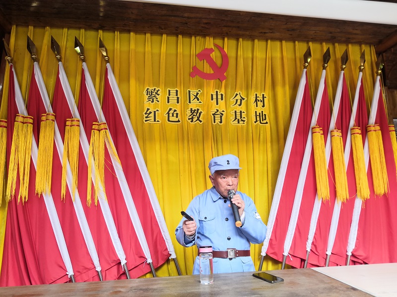 繁昌县中分村曾是谭震林将军指挥“繁昌保卫战”的司令部驻地,谭震林率领新四军第三支队在铜繁抗日前线与日军先后进行了200余次的大小战斗,取得了毙伤日伪军2000余人战果。特别是五次繁昌保卫战的胜利粉碎了日寇夺取繁昌、扫荡皖南的计划。此次活动,地旅学院邀请了年近八旬的党员志愿服务队义务宣讲志愿者、“中国好人”徐孝旺老人为广大党员讲授党课。徐孝旺老先生结合展馆内的图片及抗战遗留的实物,向党员们讲述了抗日将士战斗的细节以及村子里每个人与抗日的故事,那一张张发黄的黑白老照片、一件件锈迹斑斑的老物品、一个个激荡人心的战斗故事和先烈们的丰功伟绩深深感染着在场的每一位党员,让大家深受革命传统教育启迪,感受革命前辈为了民族解放事业艰苦奋斗、舍生忘死的牺牲精神。